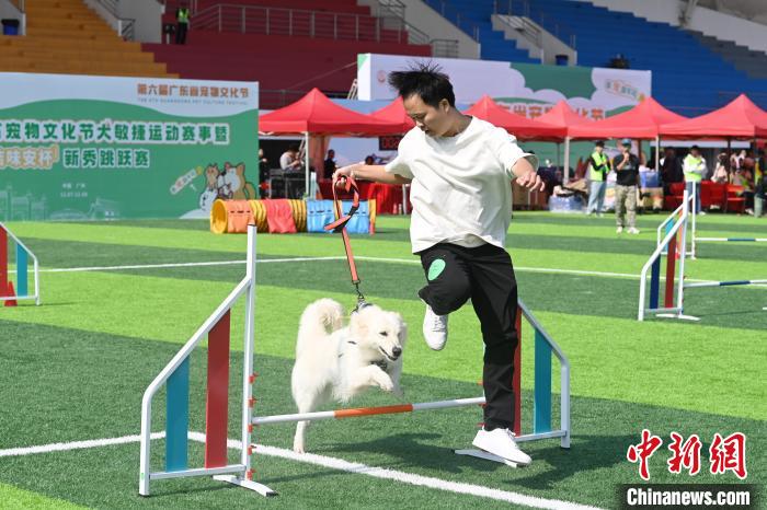 圖為寵物狗玩飛盤吸引民眾觀看。中新社記者 陳楚紅 攝