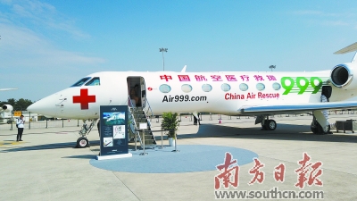 北京紅十字會999急救中心的灣流G550航空醫(yī)療專機(jī)首次亮相。通訊員 王有星 攝 |
