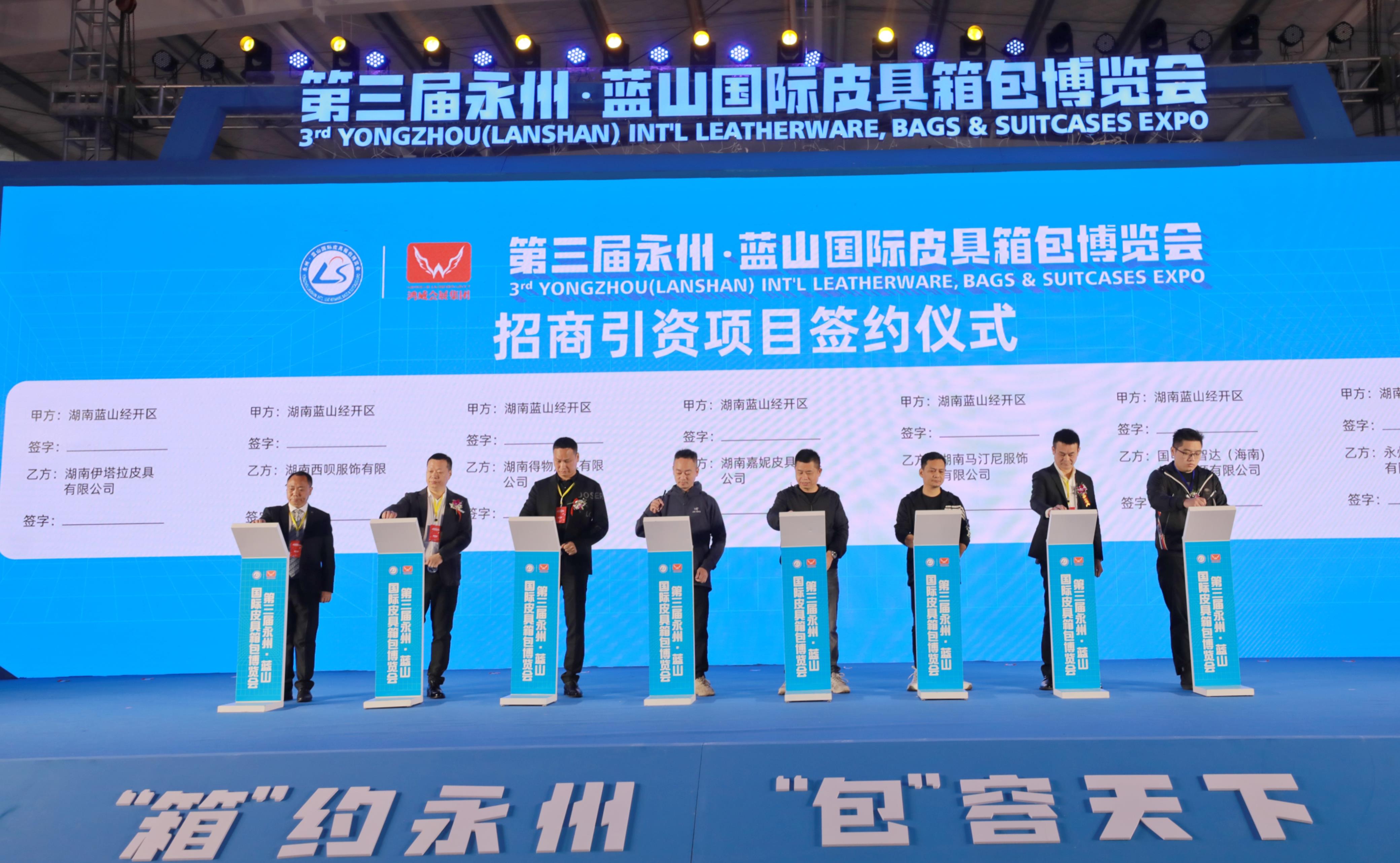 今日永州訊 今天上午,第三屆永州·藍(lán)山國(guó)際皮具箱包博覽會(huì)在藍(lán)山縣皮具箱包科技產(chǎn)業(yè)園創(chuàng)品國(guó)際智慧物流園開幕。省政協(xié)副主席何寄華宣布開幕。市委書記朱洪武致辭。省政府副秘書長(zhǎng)周義祥、老撾駐長(zhǎng)沙總領(lǐng)館總領(lǐng)事頌奇·旺康、省貿(mào)促會(huì)副會(huì)長(zhǎng)伍登國(guó)、長(zhǎng)沙海關(guān)副關(guān)長(zhǎng)吳昊、省商務(wù)廳商務(wù)服務(wù)中心主任張軍平、省工信廳二級(jí)巡視員陳軍等領(lǐng)導(dǎo)出席。市領(lǐng)導(dǎo)謝景林、侯文、劉玲軍、馮德校、蔣良鐵、韓順華、方智毅、何沖龍等出席。副市長(zhǎng)肖揚(yáng)主持。