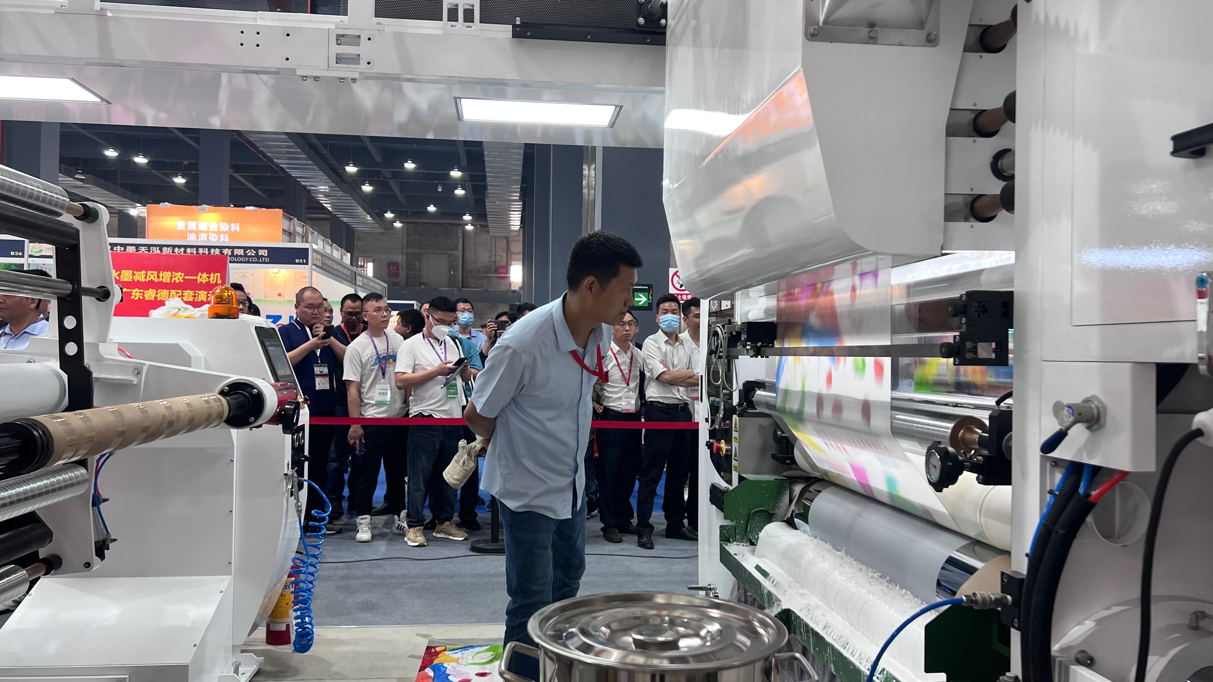 “這是印刷區(qū),參展企業(yè)的油墨通過設(shè)備印刷出來,油墨干沒干?效果好不好?客商都能直觀看到?!痹诓┯[會的演示區(qū),參展設(shè)備企業(yè)負責人告訴記者,主辦方專門設(shè)置了演示區(qū),給客商最直觀的感受。演示開始后,大型設(shè)備高速運轉(zhuǎn),演示區(qū)外排起了長龍,一些客商拿出手機,拍攝油墨材料及印刷成品。